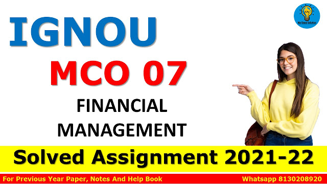 MCO 07 FINANCIAL MANAGEMENT Solved Assignment 2021-22, MCO 07 Solved Assignment 2021-22, MCO 07 Assignment 2021-22, MCO 07 Assignment, IGNOU Assignments 2021-22- Gandhi National Open University had recently uploaded the assignments of the present session for Programme for the year 2021-22. Students are recommended to download their Assignments from this webpage itself. They don’t got to go anywhere else when everything regarding the Assignments are available during this article only.